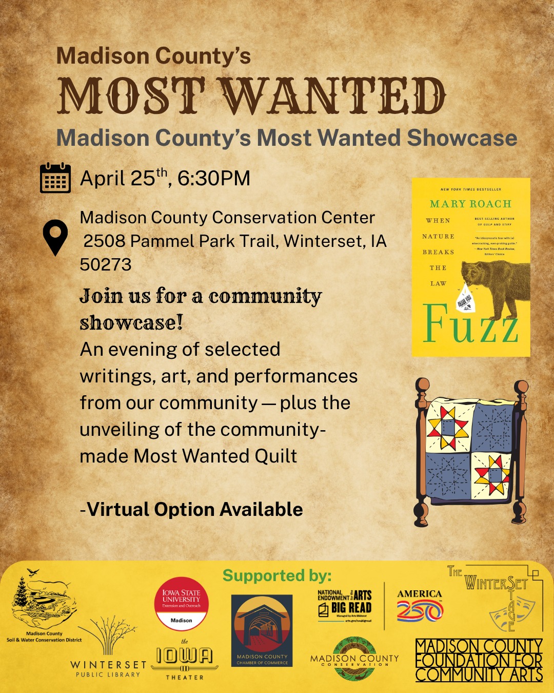 Join the Madison County’s Most Wanted Book Club Facebook Group for more information on upcoming events!