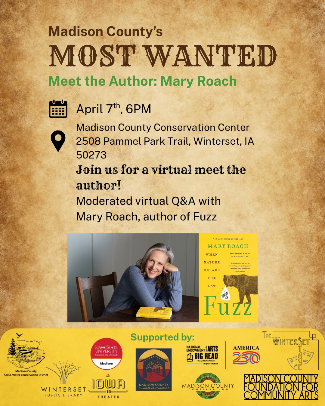 - Meet the Author, Mary Roach (virtual) – 4/7/26