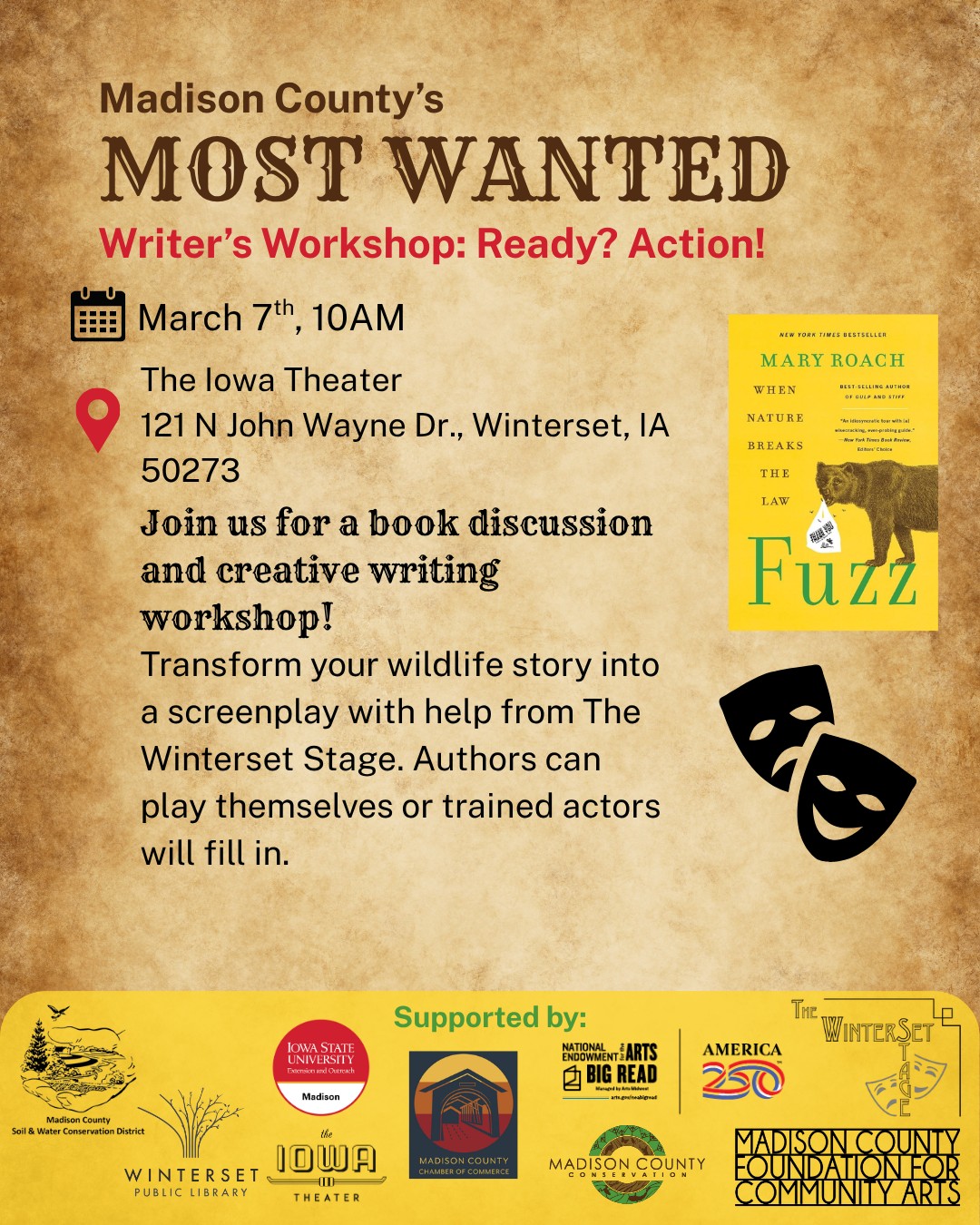 - Theatrical Writing Workshop w/ Winterset Stage – 3/7/26, The Iowa Theater